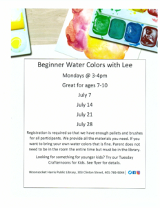 Registration is required so that we have enough pallets and brushes for all participants. We provide all the materials you need. If you want to bring your own water colors that is fine. Parent does not need to be in the room the entire time but must be in the library.